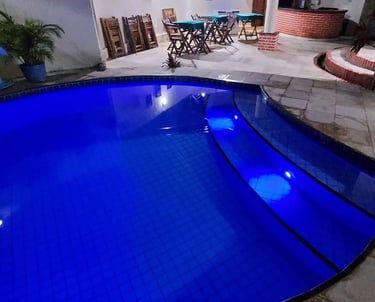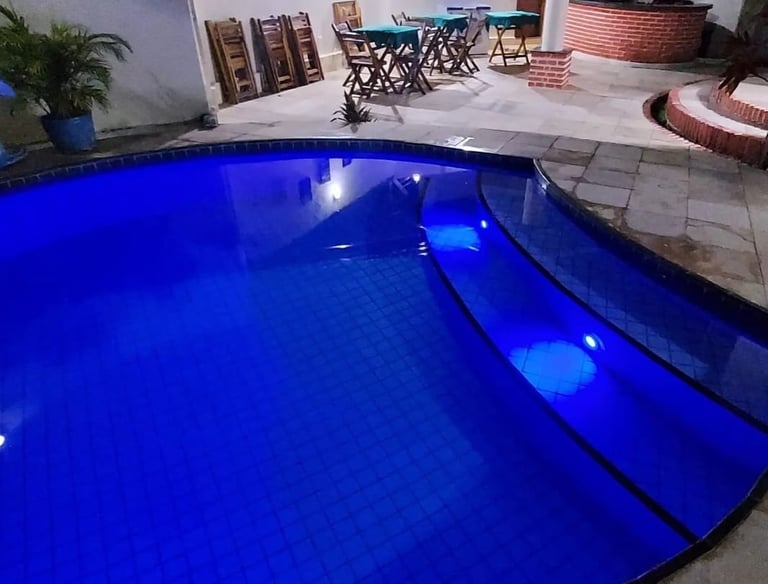 Desfrute de momentos relaxantes na piscina.
